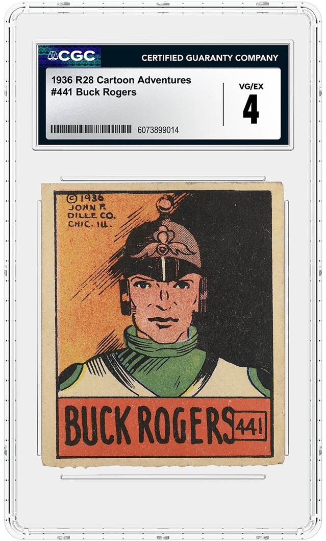 Finally, a complete subset of 24 1936 R28 Cartoon Adventures cards featuring Buck Rogers is being offered alongside the Disney cards. Featuring the science fiction adventure hero from Philip Francis Nowlan’s comic strip, these cards show fun full-color cartoon artwork.