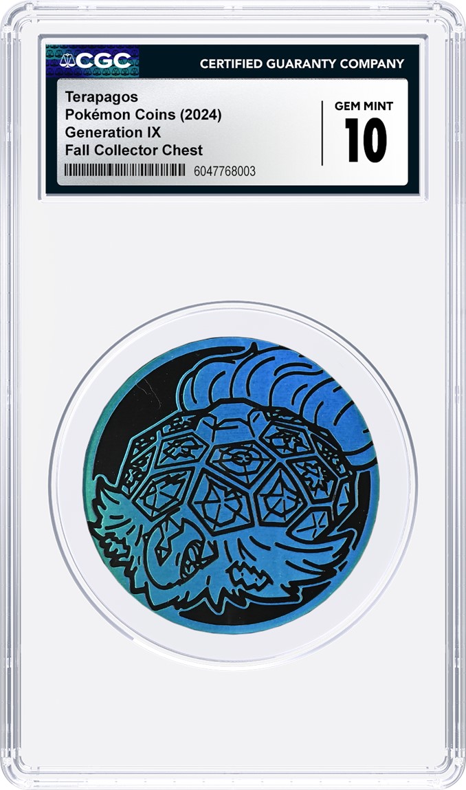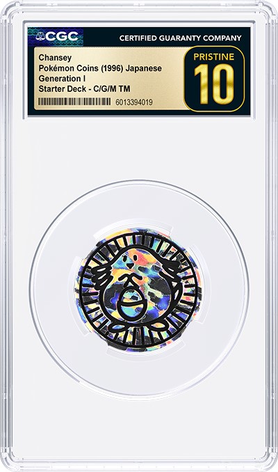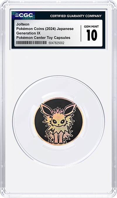CGC is one of the few third-party grading service that has developed a special holder specifically for Pokémon coins and other TCG, sports and non-sports coins. It securely fits Pokémon promotional coins and Pokémon battle tokens sized between 29.8 millimeters and 51.6 millimeters in diameter and 2 millimeters and 3.08 millimeters in thickness. For sports coins, the holder accommodates both vintage and modern sports coins that are around 38 millimeters in diameter.