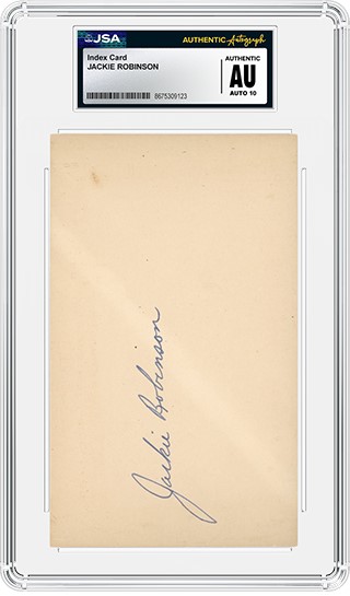 To learn more about JSA services and fees for autographed memorabilia, go here. Questions about submitting signed index cards and cut autographs can be made by calling (+1) 855-GRADE10 (855-472-3310) or emailing [email protected].