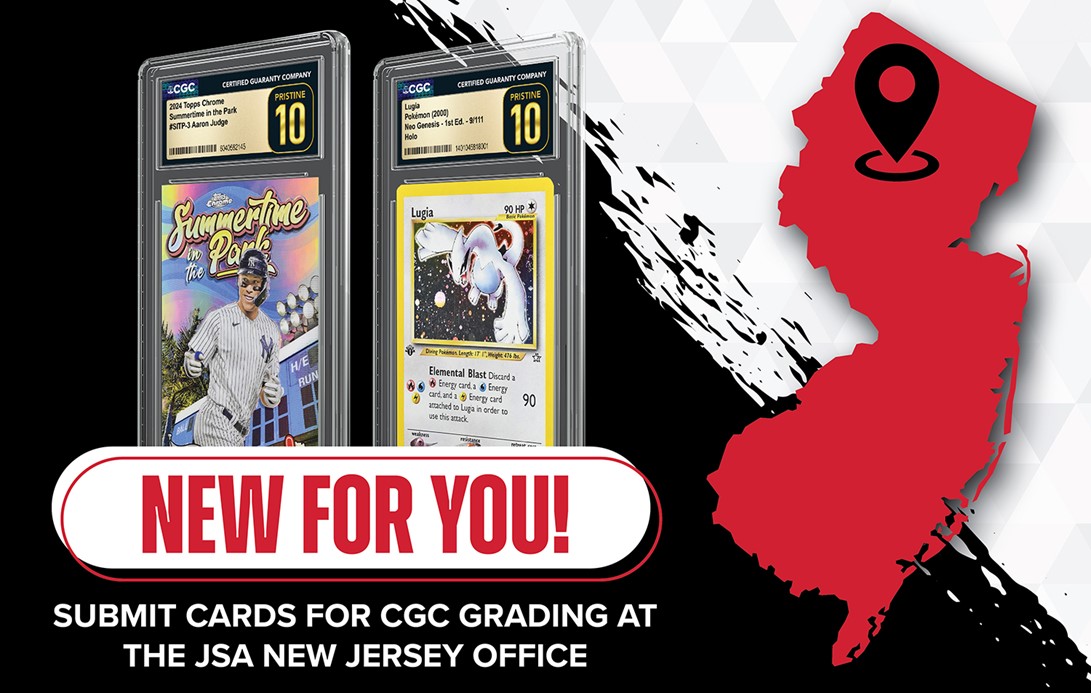 If you're in Northern New Jersey, you can now submit cards for CGC authentication and grading through JSA's office in Parsippany, New Jersey. Collectors and dealers submitting TCGs, sports cards and non-sports cards to CGC at any tier level — including signed cards for CGC x JSA Authentic Autograph certification — can now drop off their submissions with JSA to take advantage of fast turnaround times and to save one way on shipping fees!