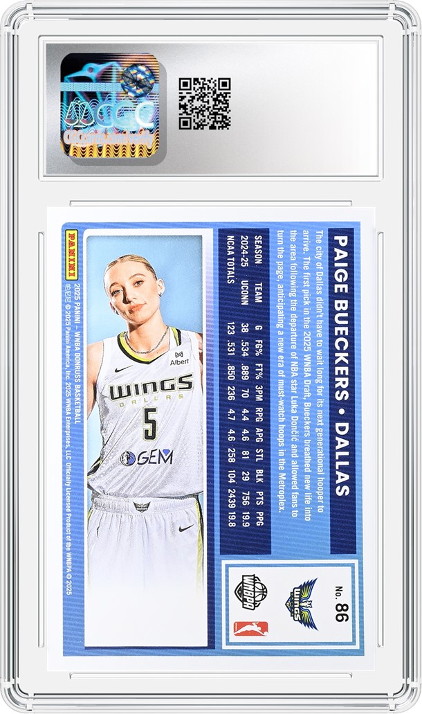 One of the most decorated women's basketball players in high school and college ever, Paige Bueckers is now making her mark in the pros. After winning three high school championships, one NCAA championship and national player of the year awards at both levels, Bueckers recently won the WNBA Rookie of the Year Award following her first season with the Dallas Wings. With sky-high expectations and a track record of success, Bueckers has gained plenty of fans on and off the court, including numerous collectors who have made sure to submit her collectibles, especially some of her rookie cards like the one above.