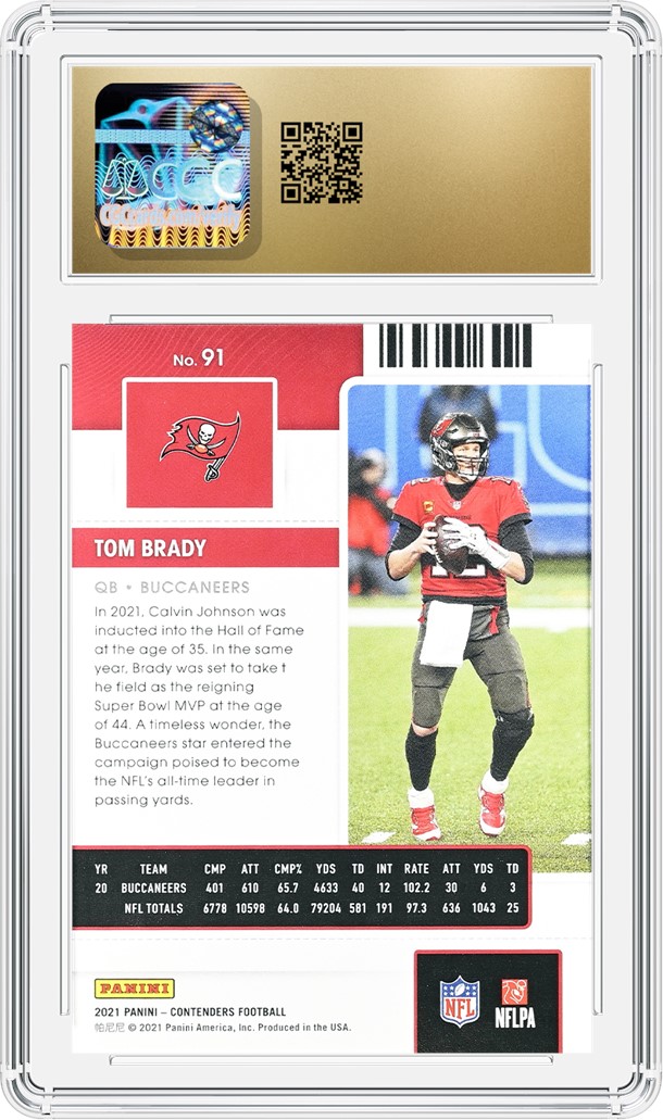 Although he retired in early 2023, collectors continue to submit a wide range of Tom Brady's cards for authentication and grading. As the undisputed greatest quarterback of all time, it's no surprise that Brady's cards are still a mainstay of current football card submissions. Whether they are cards issued in his early years in New England, late career cards from his time in Tampa Bay or post-career issues, Brady fans still send in his collectibles in droves. As one of the most collected athletes ever, the seven-time Super Bowl champion's legacy is forever cemented on the gridiron and within the hobby, as well.