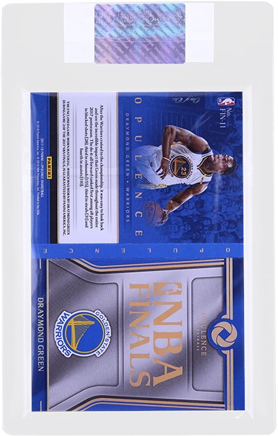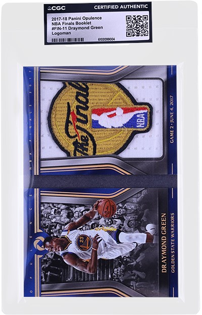 The 2017-18 Panini Opulence NBA Finals Booklet #FIN-11 Draymond Green - Logoman certified CGC Authentic realized $50,400 on December 21. As an integral piece of the Warriors dynasty that won four NBA championships in eight seasons, Green was the enforcer of the team. Making a career out of his energetic play on both sides of the ball, the 35-year-old took care of the dirty work on the court, which allowed the likes of Stephen Curry and Klay Thompson (two of the greatest shooters ever) to do what they do best.