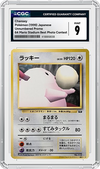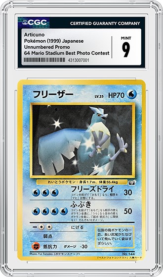 Collectors trust and value CGC’s grading process and the CGC Guarantee, which leads to increased premiums when CGC-certified cards are sold at auction. CGC-certified Pokémon cards often offer savvy collectors a significant return on investment. In 2025, two Japanese 64 Mario Stadium Best Photo Contest promos graded by CGC each realized six-figure prices in Fanatics Collect Buy Now sales. A Chansey graded CGC 9 realized $150,000, while an Articuno graded CGC 9 realized $100,000.