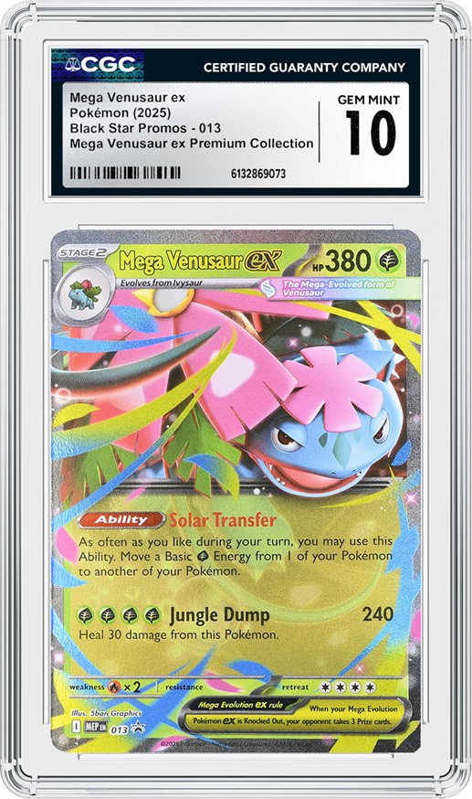 In anticipation of the upcoming 30th anniversary set releasing in September, CGC has seen a surge of submissions that include Mega Evolution Black Star Promo cards. Black Star Promo cards have been around since the early days of the Pokémon TCG and remain popular among both tournament players and collectors. The latest era of the TCG, Mega Evolution, includes some amazing Black Star Promos, including a Mega Charizard X ex (which is on our list). Here are the five Mega Evolution Black Star Promo cards that were most submitted through the month of March.