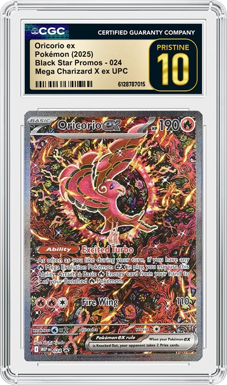 Released alongside the Mega Charizard X ex promo in the Mega Charizard X Premium Collection, this Oricorio ex card features a full-art illustration by Shinji Kanda, the artist behind the Paldean Fates alternate art Magikarp. Many collectors have dedicated sections in their collections for Kanda’s artwork, which has led to a surge in popularity for Oricorio ex. CGC has certified more than 12,000 examples of Oricorio ex, according to the CGC Cards Population Report.