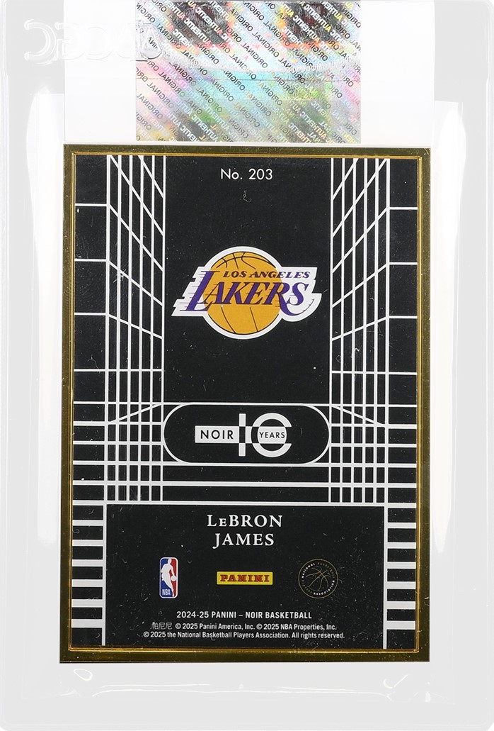 These notable red flags on the front and back of the counterfeit 2024-25 Panini Noir Metal Frame #203 LeBron James - FOTL Holo Gold helped CGC experts determine that it is not an authentic example. Education is the most important tool when collecting cards. The more collectors know about the printing and manufacturing process of cards, the fewer mistakes will be made when buying cards. This example also highlights the importance of certification for any high-value card.