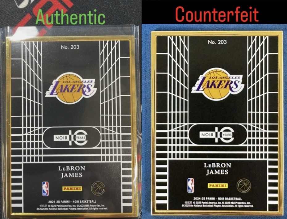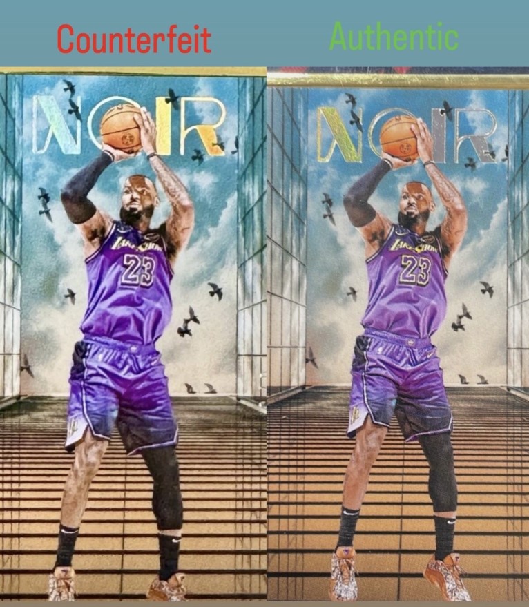 Counterfeit Card Alert: 2024-25 Panini Noir Metal Frame #203 LeBron James - FOTL Holo Gold