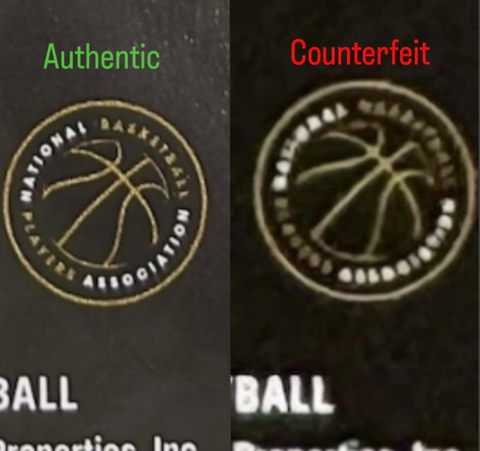 LEFT: Back closeups of the "NOIR 10 Years" logo RIGHT: Back closeups of the NBA logo |