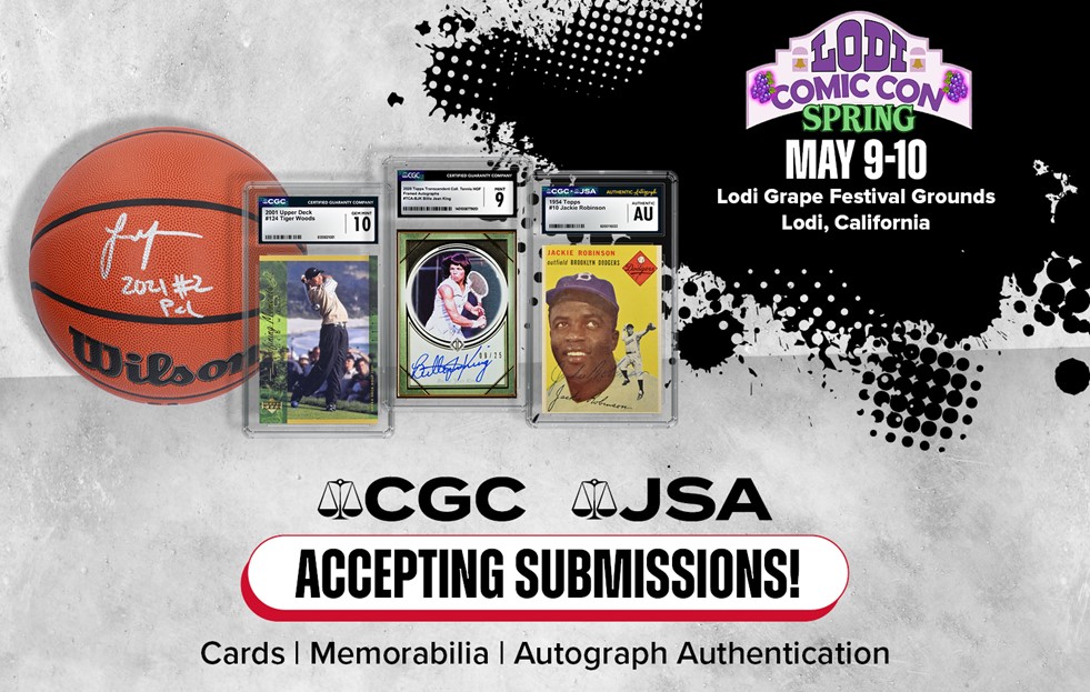 CGC® and JSA® are excited to be accepting submissions of cards and autographed memorabilia at Lodi Comic Con, being held at the Lodi Grape Festival Grounds in Lodi, California, on May 9-10, 2026.